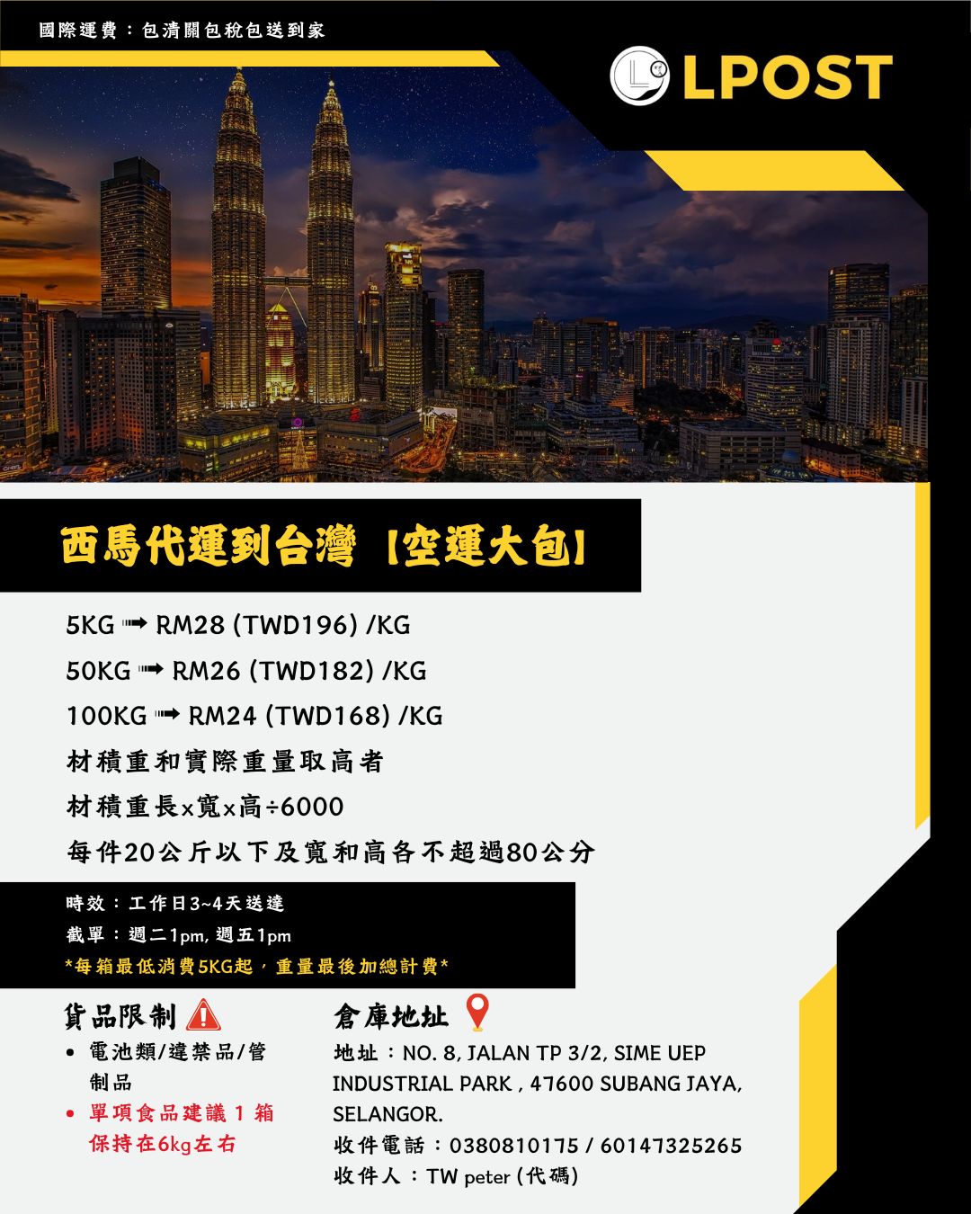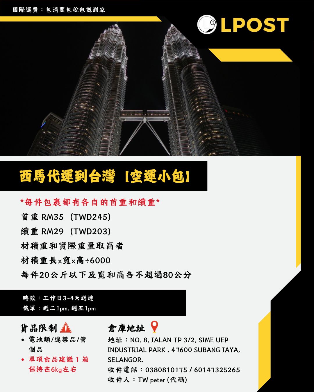 低消 1kg |RM35(首重)+ RM29/kg(續重)